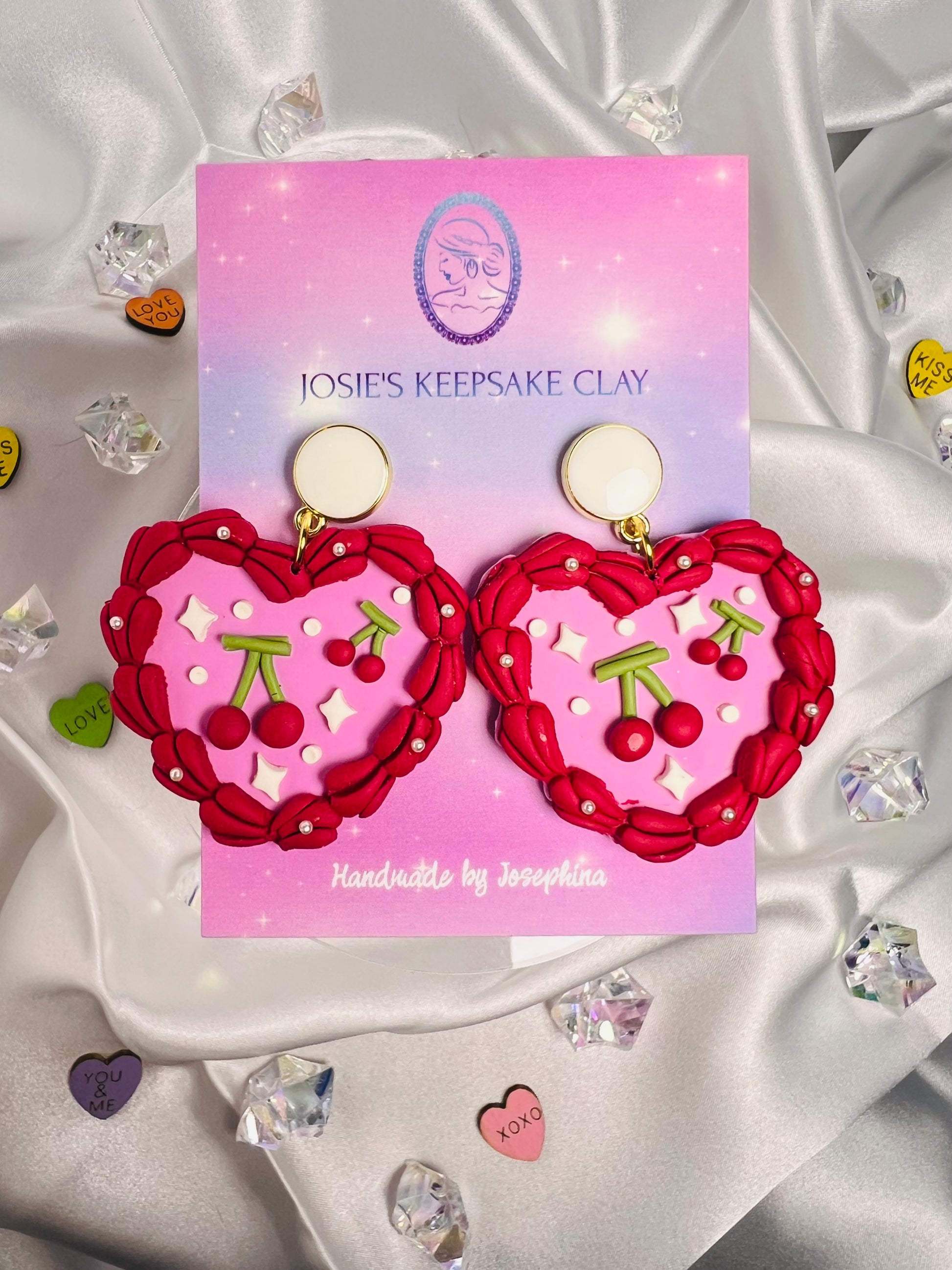 Handmade, delicate, lightweight polymer clay earrings. All earring backs are hypo-allergenic and nickel free. These are perfect for sensitive ears; however, Josie’s Keepsake Clay is not responsible for any skin reactions caused from these posts or any pieces.